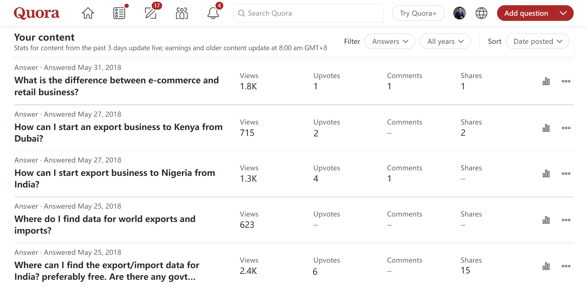 早在2018年的时候,SkilledTube开始涉猎Quora问答平台运营推广。当时,主要与北京一家进出口海关数据公司合作。通过在Quora上回答外贸行业问题,将用户引导至独立站购买数据。我们弱化营销,强调答案是否对用户真正有帮助。